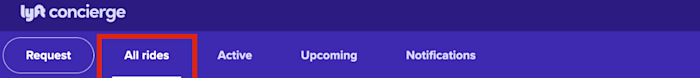 2. Select ‘Rides’ under Business Profiles, Concierge, or Lyft Pass (whichever product the ride you’re inquiring about was taken under)